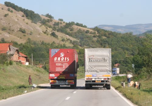 Die Grenze Kroatien-Serbien stellt kein Problem dar, nur die unverschämt hohe Maut für Transporter und die waghalsigen Manöver der LKW-Fahrer. Kurz hinter dem etwas trostlos aussehenden Belgrad schiebt uns fast ein fetter Truck von der Spur und nahe der bulgarischen Grenze entgeht ein 40-Tonner wie durch Geisterhand bei einem Überholvorgang einem Riesencrash mit zwei weiteren Lastern. In Bulgarien tut sich straßentechnisch, vermutlich auch mit der Unterstützung durch die EU, einiges. Doch der Feierabendverkehr um Sofia wird dennoch zur Geduldsfrage, weit kommen wir heute also nicht mehr. Bleibt das Wildzelten zwischen Sofia und Plovdiv. Ein schönes, verstecktes Plätzchen am Bach, perfekt!! Doch bald ist es aus mit der Ruhe, mitten in der Dunkelheit kommen drei finstere Gesellen und stöbern uns auf. Als es dann nachts auch noch an die 5°C herunterkühlt ist es vorbei mit der Idylle. Etwas steif von der Kälte blasen wir am folgenden Tag zum Angriff auf die letzten Kilometer bis in die Türkei. Doch schnell werden wir ausgebremst, ein LKW mit Überbreite versperrt den Weg, die Türkei rückt nur mühsam näher. Zum Glück läuft es an der Grenze dann flüssiger. Einzig der letzte Grenzbeamte hofft wohl noch auf ein Präsent und hält uns mit umständlichen Fragen zum Thema Iran, Treibstoff, Verschleierung usw. auf. Wesentlich herzlicher geht es auf der ersten Raststätte zu, wo wir von zwei freundlichen Einheimischen zum Tee eingeladen werden, bei dem ich mir auch gleich massiv den Mund verbrenne. Immer noch besser, als mit dem LKW aus der Türkei ausreisen zu wollen; ca. 10km (!!) stehen die LKWs in Schlange an der Grenze.