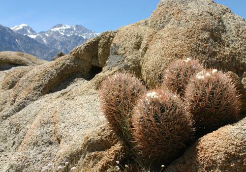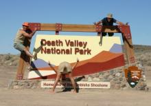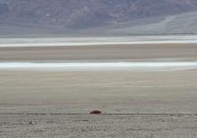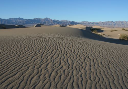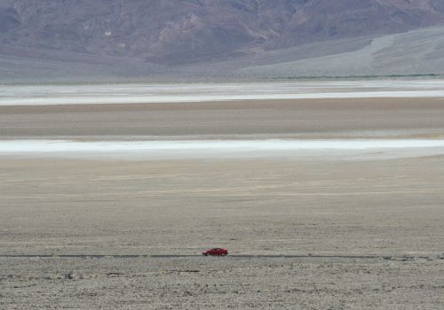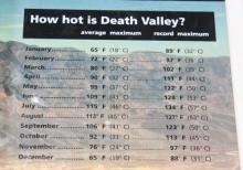 Am folgenden Tag im Death Valley, das wir nach dem Fahrrad jetzt auch mit dem Auto besuchen, sind wir dann schon bei deutlich über 40°C angekommen. Auch nachts kühlt es kaum ab, sodass nur schwer an Schlaf zu denken ist. Jetzt bekommt man eine gute Vorstellung davon, wie unwirtlich das Tal im Hochsommer sein muss. 57°C ist der bisherige Höchstwert der vor Jahren gemessen wurde. Interessanterweise können wir auch bei diesen Temperaturen den Blick auf den immer noch leicht schneebedeckten!! Telescopemountain genießen, der mit seinen über 3000m das Tal überragt.