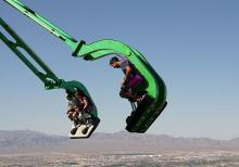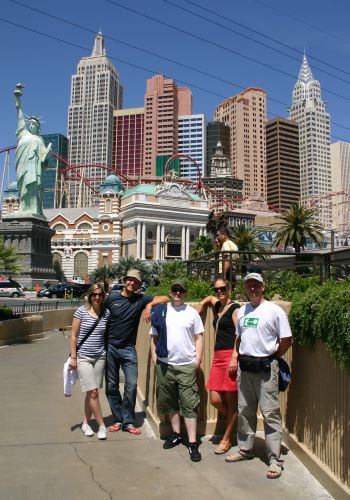 Aus der menschenfeindlichen Gluthölle des Death Valley geht es mit dem letzten Tropfen Sprit (nur hier nicht stehenbleiben!!) rein in die glitzernde Glücksspielmetropole Las Vegas. Die Glücksjäger Isabel, Hose und Walli haben sich angekündigt. Erstere haben einen Geburtstagsgutschein für das Casino mit im Gepäck, leider sind die Chips schnell verspielt. Mehr Fortune haben Britt und Oli, die sich für 10 bzw. 40US-Dollar Einsatz, hinterher 45 und 224Dollar auszahlen lassen können. Gute Nerven, nicht nur am Roulett-Tisch, zeigen Oli und Isabel dann noch auf dem Stratosphere-Tower. 250m über der Erde kreisen sie mit dem Karussel über der Downtown von Las Vegas (nichts für schwache Nerven)!!