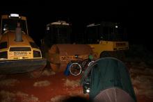 Schnell hatte mich der Regen, der angekündigt war, eingeholt und mein Nachtlager hatte sich von rotem Staub in roten Lehm verwandelt. Morgens nahm dann der Wind noch dramatisch zu und ich quälte mich mit 12 bis 15 km/h vorwärts, immer mit der Gewissheit, dass die nächste Wasserstelle erst in 200 km erreicht sein wird. Mir fielen die Worte eines anderen Radreisenden ein, den ich zufällig in Carnarvon traf, "nachts weht der Wind nicht und man muss das Elend (öde Landschaft) nicht sehen". Mir blieb also auch nichts anderes übrig und die nächsten Nächte wurden kurz. Bei Dunkelheit radeln macht auch nicht viel Spaß wenn man schlecht beleuchtet von den Roadtrains überholt wird und sich schon wie eines der Kängurus im Straßengraben liegen sieht. Ich schaffte etwa 80 km bis der Wind anfing, dann noch mal 2 bis 3 std. gegen den Wind weiter strampeln bis zu einem geeigneten Mittagsplatz. Hier sah mein Programm vor allem Füße hoch legen und warten bis voraussichtlich um etwa 16.00 Uhr der Wind wieder nachlässt vor, um dann noch mal zwei Fahrradstunden draufzupacken und bei Einbruch der Dunkelheit einen Nachtplatz anzusteuern, um wieder in der Nacht aufzubrechen.
