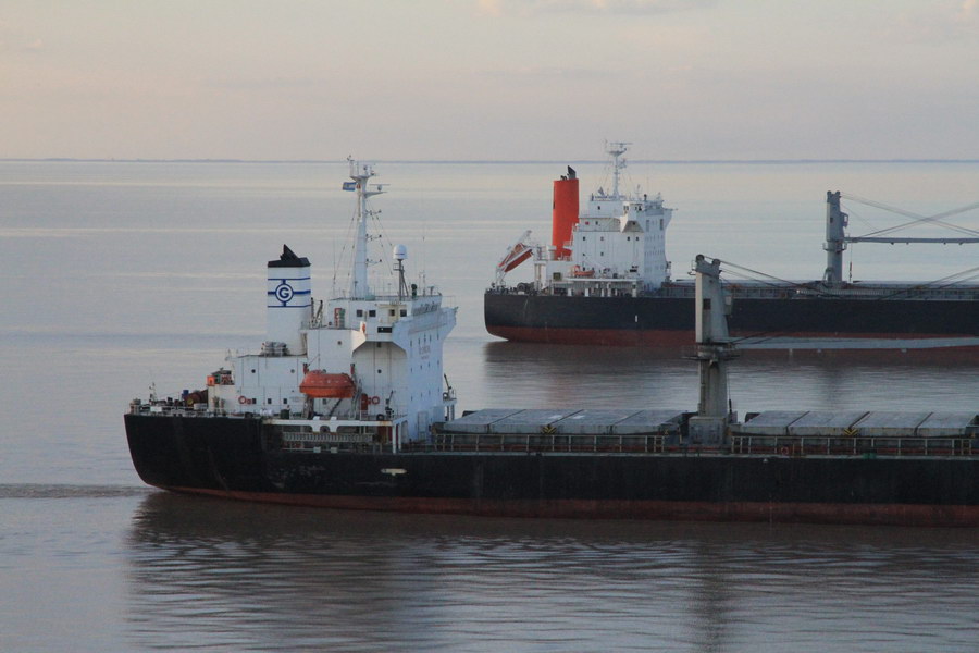 Am Abfahrtstag laden uns Melanie und Werner zum gemeinsamen Frühstück ein, dann heißt es traurigerweise Abschied nehmen von unseren treuen Reisefreunden. Wir vertanken die letzten uruguayanischen Pesos, dann sind wir schon am Eingang zum Hafen, wo neben dem französischen Pärchen auch ein Paar aus Holland auf den Hafenagenten wartet. Dieser schleust uns hektisch durch das Gelände. Unser Fahrzeug wird gescannt, dann geht es ohne Ausreisestempel gleich weiter zum Schiff. Anscheinend wird nur noch auf uns gewartet und das Schiff soll umgehend auslaufen, denn Liegezeit im Hafen bedeutet hohe Kosten für die Reederei. So hastig sich unser Abschied von Montevideo und Uruguay gestaltet hat, so langatmig werden die Folgetage. Eigentlich hätte die Grande America nach Montevideo gleich Paranagua/Brasilien ansteuern sollen, doch Streiks in Argentinien machten eine Fahrplanänderung notwendig. Wir fahren also erst einmal in die falsche Richtung und sollen den ausgefallenen Stopp in Zarate/Argentinien nachholen. Doch auch das verschiebt sich, der Streik hält an und die ersten vier Tage ankern wir in Sichtweite von Montevideo im Rio de la Plata und warten auf Signale aus Argentinien. Am fünften Tag geht es frühmorgens endlich los und einen Tag später erreichen wir den Flusshafen von Zarate. Noch einmal betreten wir argentinischen Boden bei zwei kurzen Landgängen, dann geht es Richtung Europa. Fast auf die Stunde genau eine Woche nachdem wir in Montevideo an Bord gegangen sind, passieren wir die Stadt wieder; jetzt geht es endgültig heim.