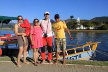 Als nächstes Ziel wartet eine alte Bekannte. Vor kaum zwei Wochen haben wir Paraty verlassen, jetzt stehen wir schon wieder auf der Matte und werden auf dem Zeltplatz auch schon wie Stammgäste begrüsst. Der kleine Ort an der Costa Verde ist aber auch wirklich ein idealer Ort um ein paar Tage abzuhängen, das wollen wir Lesly und Pedro nicht vorenthalten. Beide sind auch gleich begeistert von dem Kleinod an der Grenze des Bundesstaates Rio de Janeiro zum Staat Sao Paulo. Obwohl sich unser Programm nicht sehr vom letzten Besuch unterscheidet, warten doch einige ganz neue Details, die wir beim ersten mal gar nicht entdeckt hatten. So sehen wir bei unserer Bootstour schönerweise etliche Wasserschildkröten und am letzten Abend rutschen wir aus Versehen im Haus der Kulturen in ein kleines Tanzfestival, wo uns bei den sambaähnlichen Darbietungen ganz schwindlig wird. Natürlich schauen wir auch wieder in Trindade bei den Superstränden vorbei, dann nehmen wir schweren Herzens endgültig Abschied on Paraty. Vermutlich werden wir auf dieser Reise nicht mehr hier vorbeikommen.